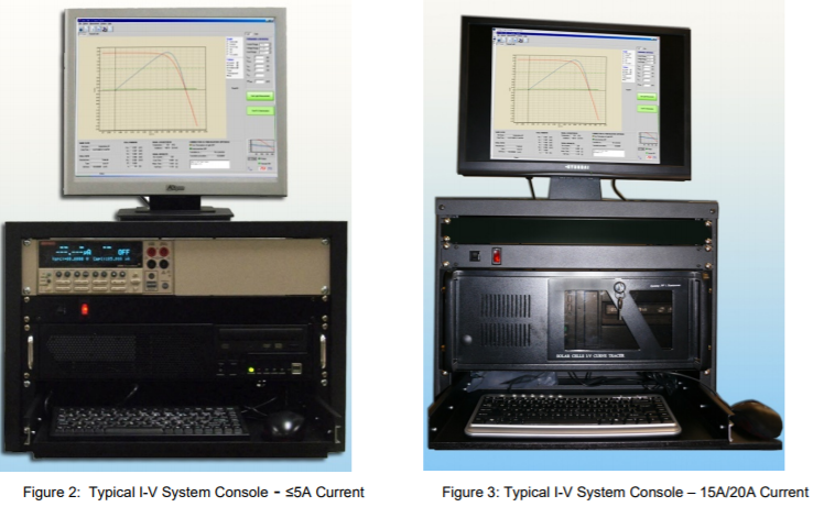 The Solar Cell I-V Curve Data Acquisition System characterizes the current-voltage (I-V) characteristics of photovoltaic devices with currents up to 20.0 amperes. It calculates the solar cell parameters, generates printable test reports and saves test data in text files. Curves are measured using classic four probes (Kelvin) technique. The system includes electronics, software, rack-mount computer, chuck and cell testing fixture with irradiance monitoring and optional temperature control. It interfaces with the customers’ Solar Simulator or a Solar Simulator can be supplied.