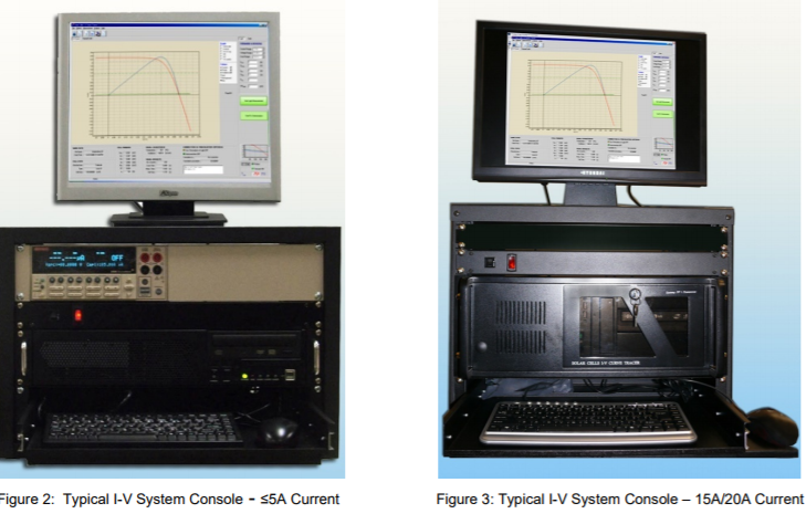 The Solar Cell I-V Curve Data Acquisition System characterizes the current-voltage (I-V) characteristics of photovoltaic devices with currents up to 20.0 amperes. It calculates the solar cell parameters, generates printable test reports and saves test data in text files. Curves are measured using classic four probes (Kelvin) technique. The system includes electronics, software, rack-mount computer, chuck and cell testing fixture with irradiance monitoring and optional temperature control. It interfaces with the customers’ Solar Simulator or a Solar Simulator can be supplied.