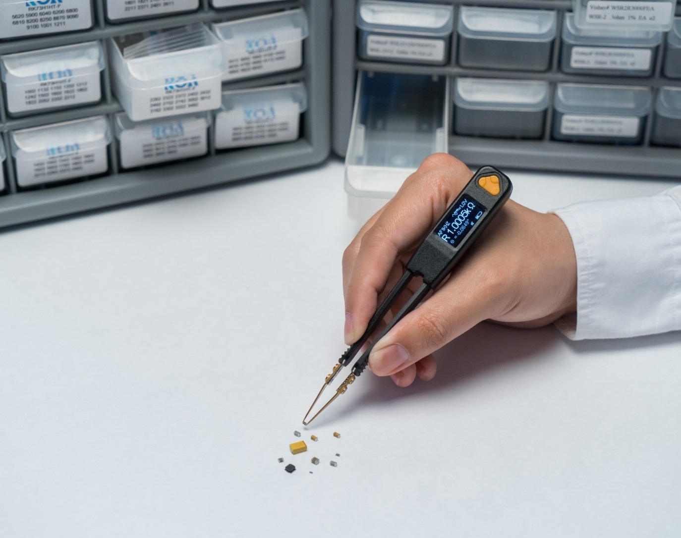 LCR Pro1 integrates a pair of tweezers like probes and a LCR meter into a single compact, lightweight, battery powered device. It is an all-in-one portable device that provides a simple and efficient solution for not only measuring SMD components, but also making in-circuit debugging.